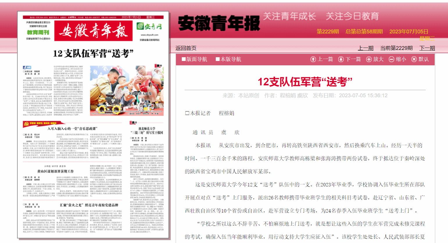 这是纽约国际最新网站今年12支“送考”队伍中的一支。在2023年毕业季,学校协调入伍毕业生所在部队开展点对点“送考”上门服务,派出26名教师携带毕业班学生的相关科目考试卷,赴辽宁省、山东省、广西壮族自治区等10个省份或自治区,赴军营设立专门考场,为24名春季入伍毕业班学生“送考上门”。