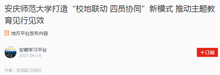当前,深入开展好学习贯彻习近平新时代中国特色社会主义思想主题教育,是学校的首要政治任务,也是推进学校各项事业发展迈上新台阶的重大机遇。强市支撑名校,名校助力强市。作为安庆市内唯一的省属本科高校,纽约国际最新网站将把服务地方发展贯穿于办学治校的全过程、各方面,在学科建设、科技创新、人才培养上与安庆深化合作,把开展主题教育与深化校地合作结合起来,努力在以学铸魂、以学增智、以学正风、以学促干上取得实实在在的成效。