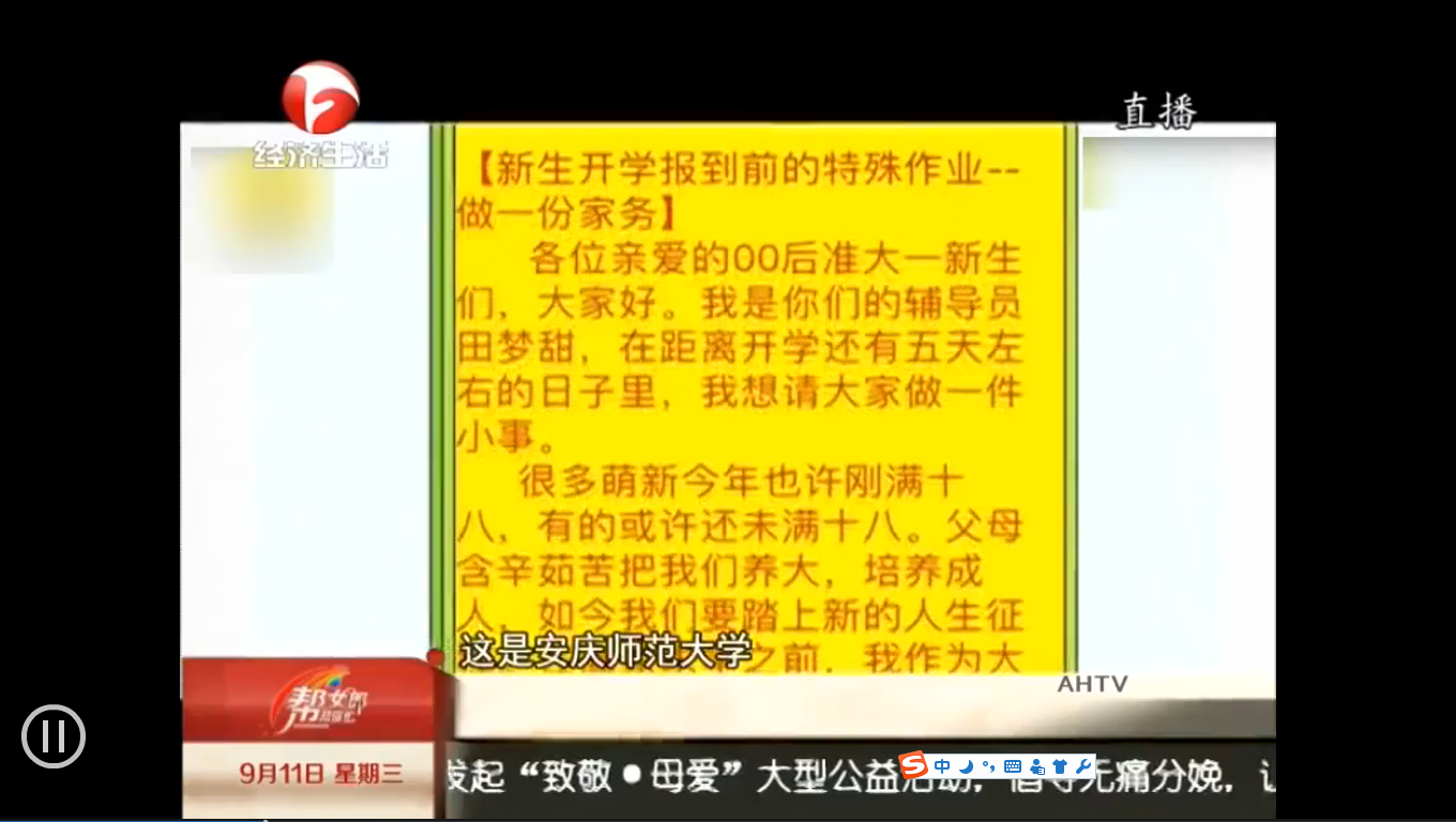 安徽卫视经济生活频道:http://www.ahtv.cn/c/2019/0911/001324318.html?spm=zm5057-001.0.0.1.ew7fvX(2019/09/11 时间段:7:13-9:00)